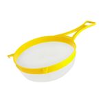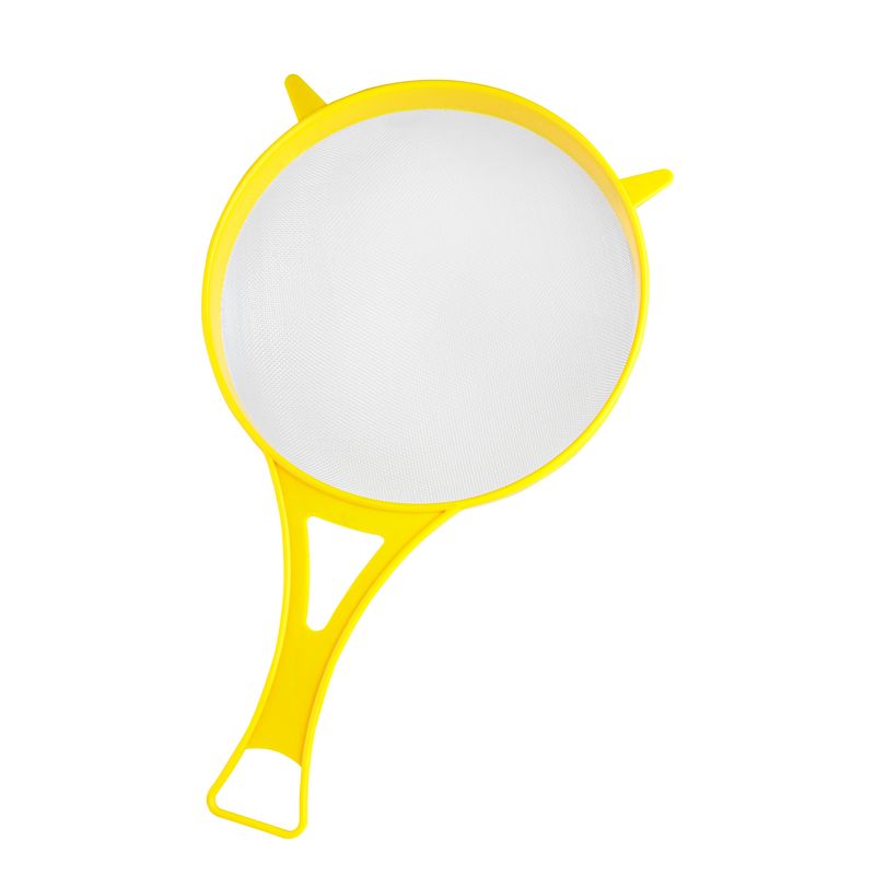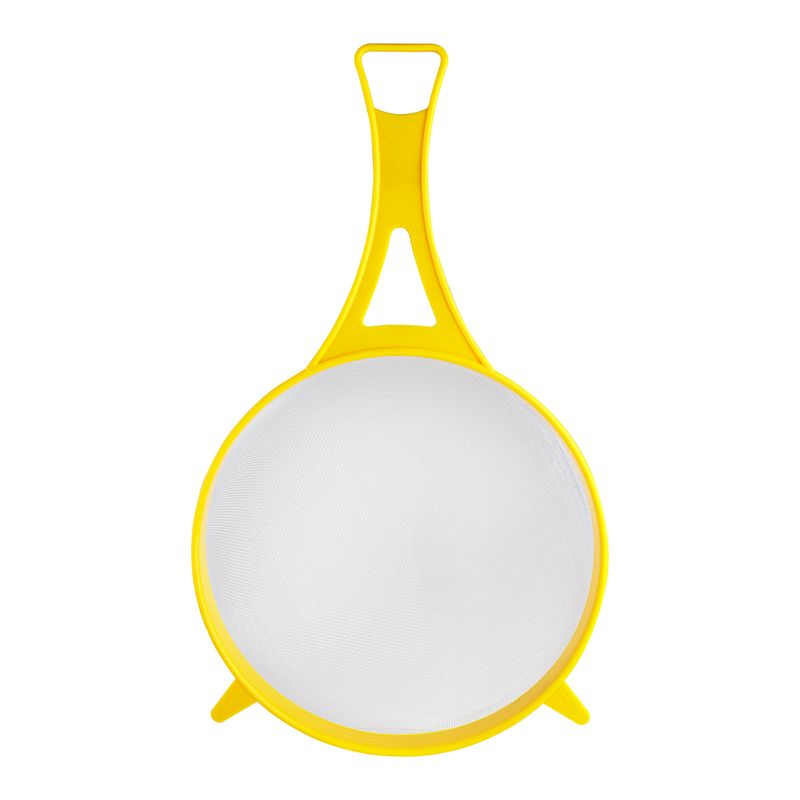 Este colador cuenta con dos solapas que permite colgarlo en la parte superior de los bowls para mejor comodidad en su uso.