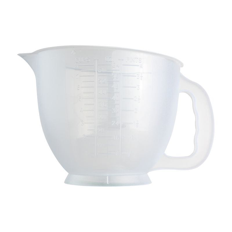 Jarra de 2 litros con cuatro diferentes escalas de graduación en el cuerpo. Fabricado con material apto para contacto con alimentos y uso en microondas. Gracias a su transparencia es muy útil en la repostería.