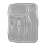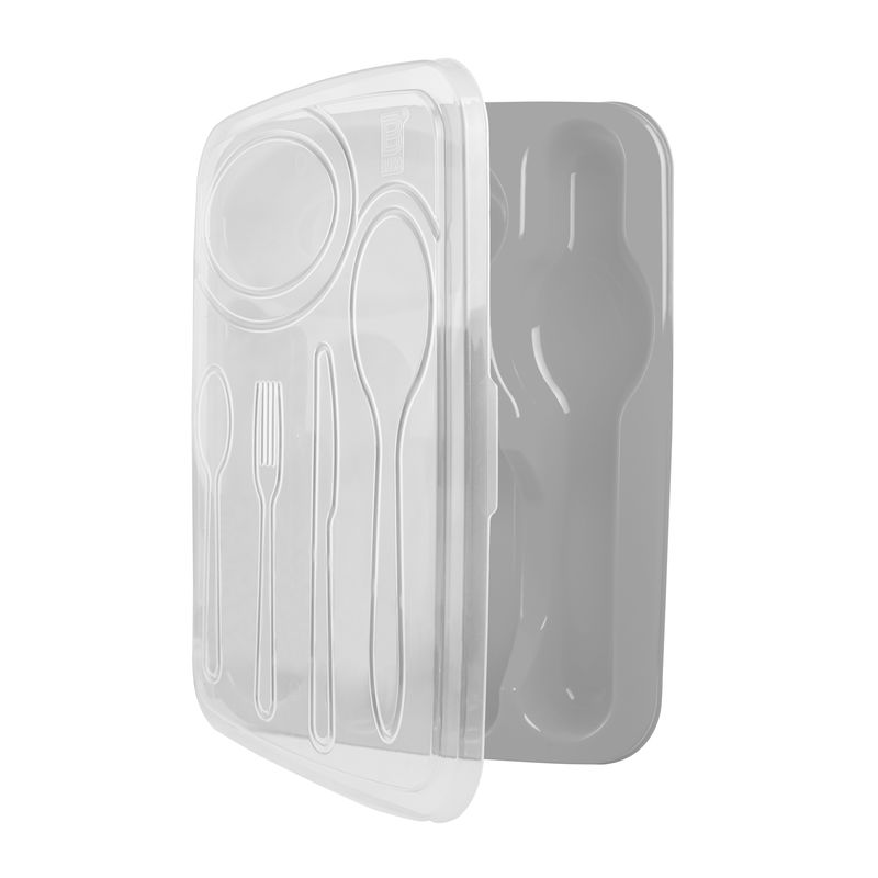 • Cuenta con tapa visagra transparente para visualizar mejor los cubiertos.